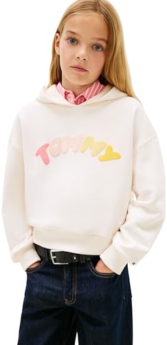 TOMMY HILFIGER FELPA CON CAPPUCCIO DA BAMBINA TOMMY PUFF PRINT KG0KG09241, BIANCO (BIANCO ANTICO), 14 ANNI